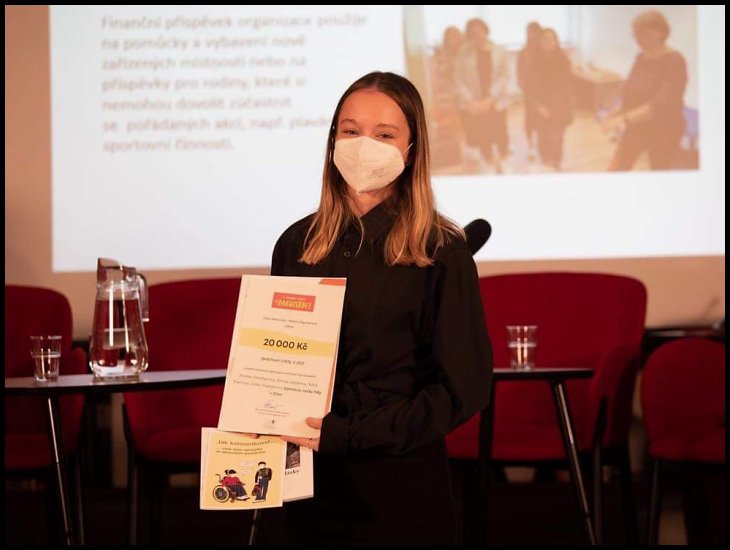 Dne 10. listopadu 2021 proběhlo slavnostní předání šeku v Knihovně Václava Havla. Tohoto předání se však nemohli zúčastnit ani zástupci organizace, ani většina studentek, cenu tak převzala jen Adéla T.