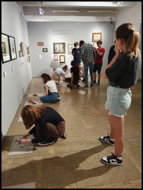 O tom, že v galerii si nemusíte jen prohlížet obrazy, ale můžete také tvořit, se přesvědčila třída 5.L na animačním programu výstavy Michala Cihláře Zátiší s hozenou rukavicí. Zábavnou formou se studenti výtvarníci seznámili s linoryty předního českého grafika Michala Cihláře, vyzkoušeli si sestavovat zátiší a pak jej výtvarně zaznamenávat. Následující hodiny ve škole svoji práci ještě zdokonalovali. Budete-li se o prázdninách nudit, zajděte do Masných krámů, ta výstava stojí za to.