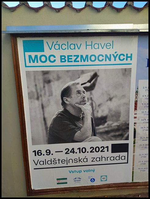 Dne 30. září se třídy 4.E a 4.A vypravily do Prahy do Valdštejnské zahrady na výstavu Moc bezmocných připravenou Knihovnou Václava Havla. Expozice je inspirovaná známým esejem bývalého prezidenta a koná se u příležitosti Havlových nedožitých 85. narozenin a 10. výročí jeho úmrtí. Úkolem žáků bylo pročíst si informace na jednotlivých panelech a vyplnit připravené pracovní listy. Podle pořadatelů je „hlavní ambicí výstavy oslovit zejména mladou generaci po celé Evropě a inspirovat ji k přemýšlení o sobě samé, o světě, o Evropě a o odpovědnosti člověka jako neoddělitelné součásti jeho práv a svobod“. Podle odpovědí v pracovních listech a názorů vyslovených v diskusi o výstavě se tento záměr autorů vydařil.