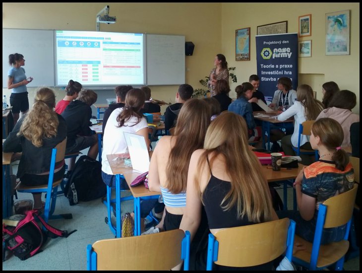 V pondělí 6. června se třída 2.E zúčastnila v rámci projektu Vzdělávání 4.0 v Plzeňském kraji interaktivního workshopu Naše firmy. Zábavnou formou, pomocí herní aplikace, si studenti založili vlastní firmu a vyzkoušeli si všemožné úkony, které jsou při vedení firmy potřeba. Výsledný produkt firmy představoval elektrický pojízdný robot, u kterého se v rámci vývoje dalo zkoušet programování. Pět třídních firem vedlo mezi sebou celé dopoledne souboj o nejúspěšnější nastartování nové firmy. Nakonec vyhrála firma na výrobu robotů-opravářů s konečným výdělkem přes 1300 mil. Všichni zúčastnění si workshop užili a odnesli si nové a užitečné informace.