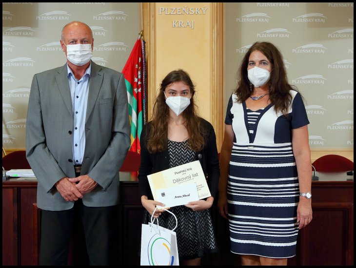 V pátek 24. září se v budově Krajského úřadu PK uskutečnilo slavnostní ocenění nejúspěšnějších žáků v celostátních a mezinárodních kolech soutěží. Naši školu reprezentovala Amira A. z 6.L, která v loňském školním roce vybojovala druhé místo v ústředním kole Olympiády v českém jazyce. Amiře blahopřejeme a přejeme mnoho úspěchů v dalším školním roce.