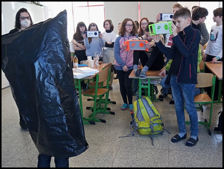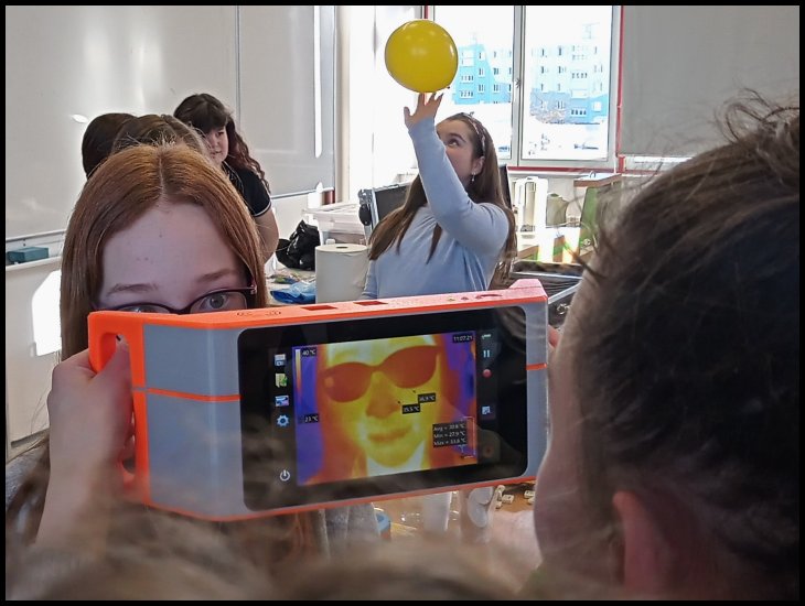 Práce s termokamerou to umožnila žákům 2.L, 2.M a 1.A v pátek 21. ledna 2022. Pod vedením PhDr. Zdeňky Kielbusové z Pedagogické fakulty Západočeské univerzity v Plzni se naučili termokameru ovládat a pořizovat termosnímky. Při práci ve skupinách si vyzkoušeli, jak funkční jsou radiátory ve třídě, změřili teploty i dalších předmětů a vyhodnotili rozdíly teplot různých částí těles. Dozvěděli se, proč některé tělesa z určitých látky se termokamerou zkoumat nedají. Provedli sledování při tepelné indukci. Překvapivá byla reakce ledu na posypání solí. Součástí byly i informace o využití termokamery v praxi. Akce byla součástí Projektových dnů v rámci projektu Vzdělávání 4.0 v Plzeňském kraji.