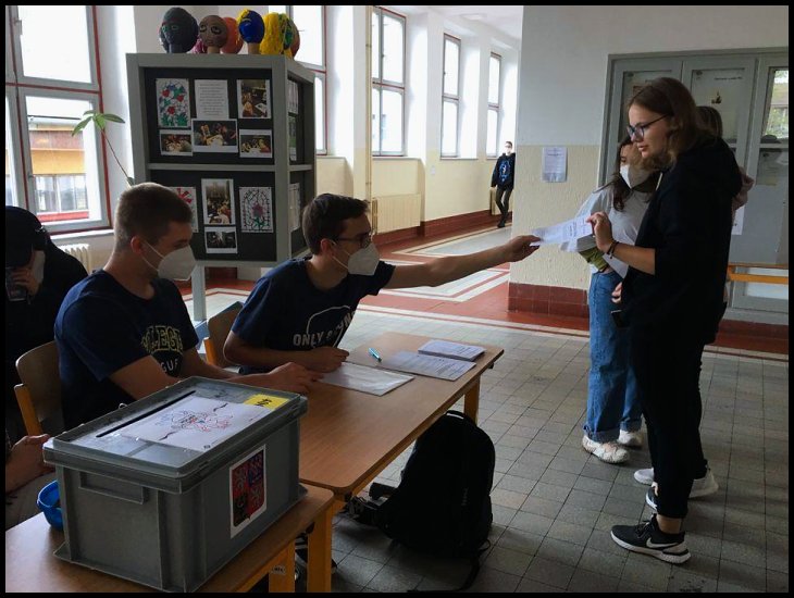 Dne 20. a 21. září se na naší škole konala simulace voleb do Poslanecké sněmovny Parlamentu České republiky. Studentské volby jsou vzdělávacím projektem programu JSNŠ organizace Člověk v tísni. V celé České republice se voleb zúčastnilo 312 škol, z toho 159 gymnázií, 120 SOŠ a 33 SOU. Možnost volit měli všichni studenti starší 15 let. Na naší škole odevzdalo hlas 137 studentů z celkového počtu 374 oprávněných voličů. Všechny hlasy byly platné.