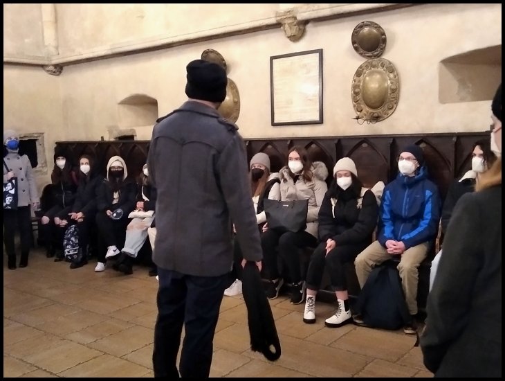 V úterý 22. února 2022 navštívili žáci 5.E Židovské muzeum v Praze, kde pro ně byl připravený program Dobrodruhy proti své vůli. Po připomenutí základních pojmů týkajících se holocaustu následoval workshop. Ten vycházel z dopisů československých židovských emigrantů z doby druhé světové války, které našla v pozůstalosti svého otce, Oswalda Holzera, Joanie Holzer Schirm. Žáci se tak lépe seznámili s kontextem doby a s důvody, proč museli jeho aktéři uprchnout z protektorátního území. Na základě četby dopisů se zamýšleli nad nejrůznějšími aspekty uprchlictví, do kterých patří i uprchlická politika tehdejších i současných států. Na příkladu židovských uprchlíků žáci diskutovali o aktuálním tématu migrace a situaci na Ukrajině. Program dále pokračoval ve Staronové a Pinkasově synagoze a byl ukončen na Starém v židovském hřbitově. Na závěr měla skupina možnost navštívit Španělskou synagogu.