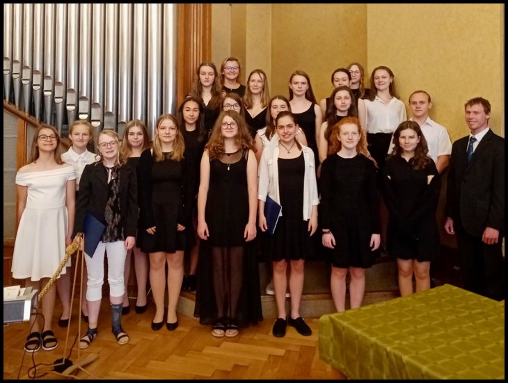 Pěvecký sbor vystoupil na slavnostním předávání maturitních vysvědčení v obřadním sále plzeňské radnice. Maturanti, přítomní rodiče a hosté si poslechli pásmo složené z písní lidových i umělých. Jednou z letošních maturantek byla i Natálie K. z 8.L, která byla věrnou členkou sboru po celou dobu svého osmiletého studia na našem gymnáziu. Jako speciální překvapení jsme jí během ceremoniálu zazpívali také skladbu I See The Light z filmu Na vlásku. Právě v této písni totiž Natálie zpívala hlavní sólo během svého působení ve sboru. Přejeme Natce mnoho úspěchů v dalším studiu a budeme moc rádi, když našemu sboru zůstane věrná i v dalších letech, pokud jí to studijní závazky dovolí.