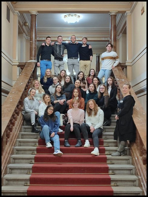 V pondělí 30. ledna zavítala třída 6.E na prohlídku budovy Velkého divadla. Dozvěděli jsme se spoustu zajímavostí z historie divadelnictví v Plzeňském kraji a z historie budovy. Měli jsme možnost navštívit nejen prostory, které jsou volně přístupné během představení, ale i zákulisí jeviště, šatny a sklad s rekvizitami pro jednotlivá aktuální představení. Paní průvodkyně, inspicientka muzikálové scény, nám řekla spoustu informací o tom, jak divadlo funguje, kolik lidí musí být přítomno, aby představení mohlo proběhnout, apod. Prohlídku Velkého divadla doporučujeme a těšíme se na budovu Nového divadla.
