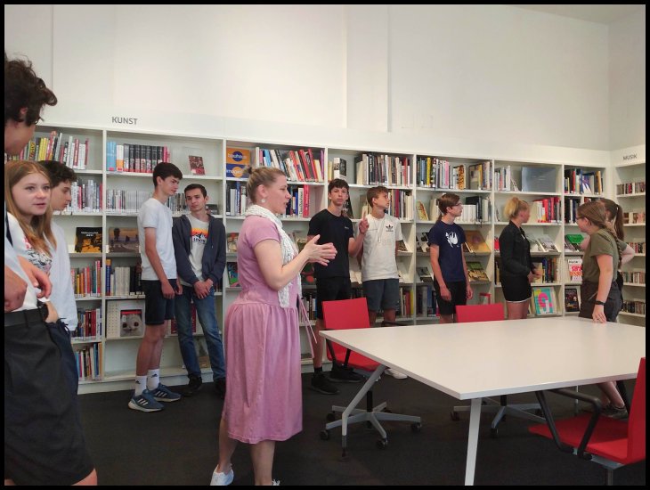 Také jsme si zahráli interaktivní hru, při které jsme prozkoumali celou knihovnu, fotili se a nahrávali hlasové záznamy. Po našem programu v Goethe-Institutu jsme se vydali na náplavku, kde jsme si dali výbornou zmrzlinu. Po procházce na náplavce jsme se vydali zpět na smíchovské nádraží, na které jsme se dopravili pražským metrem z Karlova náměstí. Tam jsme čekali na vlak, který nás zase odvezl zpátky do Plzně.
