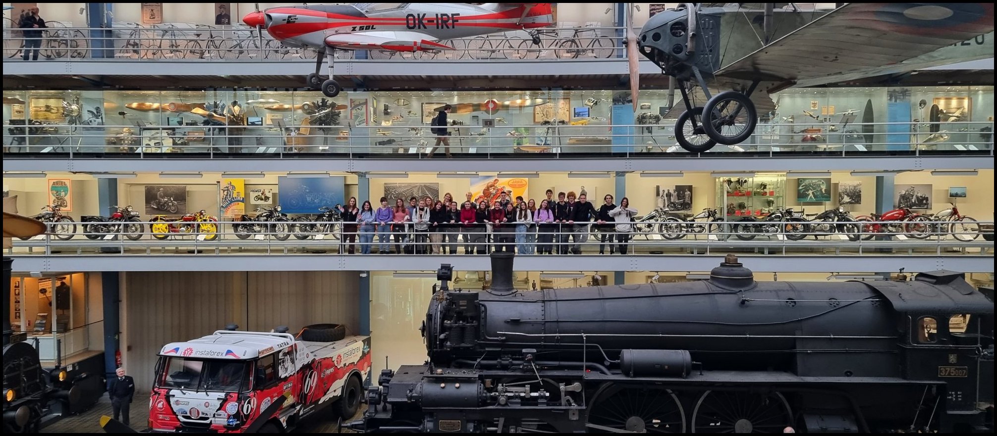 Hned po pololetním vysvědčení si za své výborné studijní výsledky udělala třída 2.A výlet do Prahy. V NTM si kromě zhlédnutí hlavních sbírek studenti mohli ozkoušet pravé televizní studio, využili možnost projít si aktuální výstavu Hardtmuth Koh-i-noor: Od uhlu k tužkařskému impériu - která mapuje osudy zakladatelů celosvětově známé firmy se sídlem na našem území i jejich přínos pro naši zemi v oblasti architektury a krajinářství minulých století. Kromě Muzea médií a tiskařství, sbírky stavitelství a architektury a půvabného technického retra domácností našich prababiček bylo tou nejvýznamnější navštívenou sbírkou Muzeum Dopravy. Určitě tu zaujaly příběhy zrodu českého motocyklismu, odvaha a vlastenectví firmy JAWA za druhé světové války a též vystavené vozy prezidentů T. G. Masaryka a Edvarda Beneše, jako i nejstarší bugatka světa s výrobním číslem 365, dvousedadlový sportovní automobil vyrobený v roce 1910, vůz naší závodnice Elišky Junkové.