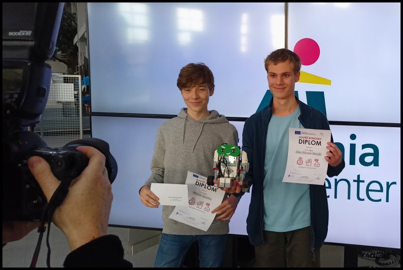 Dne 2. listopadu se tým „Lego Masters z GLP“ zúčastnil soutěže robotiky, která se konala v Techmanii. Členy týmu jsou Michal Š., Alex Dorian N., Petr F., Matěj F. a náš robot Eddie. Proti nám se postavilo 24 týmů z celého Plzeňského kraje, ale i přesto se stal Eddie desátým nejrychlejším závodníkem. Naopak v soutěži kreativity se nám dařilo mnohem lépe - obsadili jsme úžasné druhé místo (z fotek je jasné, že největší radost měl Eddie). I přes všechny tyto úspěchy však neusínáme na vavřínech a tvrdě a neúnavně pracujeme na zadání další soutěže.