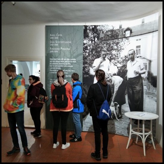 Začátkem září se Strží sice přehnala supercela a poničila část objektu, ale expozice a sbírky Památníku Karla Čapka zůstaly neponičené, a tak jsme se jako každoročně mohli v rámci výuky literatury vydat s 3.A a 7.L na exkurzi. Počasí nám v úterý 18. října 2022 moc nepřálo, ale i přes to jsme si výlet na Starou Huť u Dobříše užili. Prošli jsme s průvodkyněmi expozice zaměřené na život a dílo Karla Čapka, Olgy Scheinpflugové a Ferdinanda Peroutky. A aby náš výlet nebyl pouze literární, zakončili jsme den prohlídkou poutního místa Svatá Hora u Příbrami.