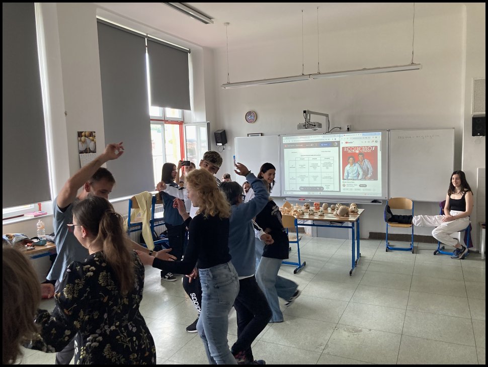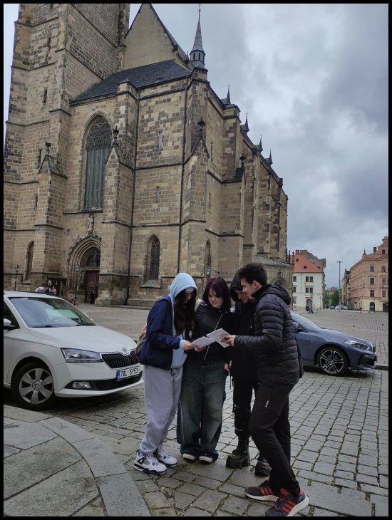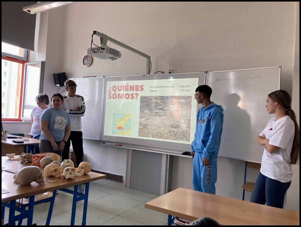 Od 7. do 11. května nás navštívilo šest studentů společně s dvěma učiteli ze španělského Jerezu. Na první den jejich pobytu jsme pro ně měli připravenou stopovačku po Plzni. Ve středu podnikli výlet do Prahy. Jako téma svého projektu si zvolili zdravý životní styl, sport a aktivní trávení volného času, proto jsme se s nimi ve čtvrtek prošli kolem Boleveckých rybníků, aby viděli, kde mnoho Plzeňanů tráví volný čas jízdou na kole, procházkami, běháním, v létě koupáním a v zimě bruslením. V pátek zavítali k nám na školu, kde se aktivně zúčastnili dvouhodinovky tělocviku a naučili nás jednu španělskou míčovou hru. Poté nám prezentovali výsledky jejich výzkumu na téma vývoje lidské lebky a na závěr nás naučili základní kroky tanců sevillanas a bachata. Někteří studenti 4.E se se španělskými studenty sešli i odpoledne a prošli se s nimi po Plzni. Na úplný závěr jejich pobytu nemohla chybět návštěva typické české restaurace. Studenti vsadili na jistotu a objednali si řízek s hranolkami, ale učitelé se toho nebáli a dali si vepřové koleno a guláš se špekovými knedlíky.