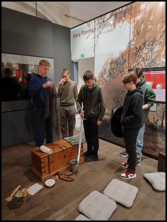 Ve čtvrtek 25. dubna jsme celá třída 4.L navštívili Západočeské muzeum v Plzni. Vzhledem k „hezkému” počasí jsme do centra města vyrazili pěšky. Čekal nás program Obrazy z dějin Staré Plzně. Dozvěděli jsme se mnoho zajímavých informací o životním stylu našich předků, o historii hradiště u Starého Plzence nebo o bojích, které zde probíhaly. K tomu jsme si mohli vyzkoušet výzbroj rytířů a prohlédnout expozici Pohledy do minulosti Plzeňského kraje.