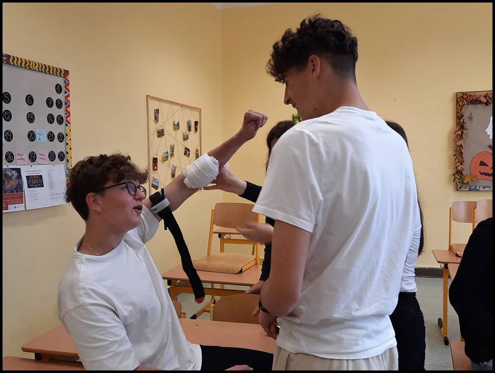 Třídy 6.E, 5.L a 1.A se 25. října vzdělávaly v rámci celoškolního projektu ve zdravovědě. Všechny skupiny si prošly teoretickou přípravou, prakticky si procvičily základní dovednosti obvazování, transportu raněných a KPR a své vědomosti upevnily kvízem.