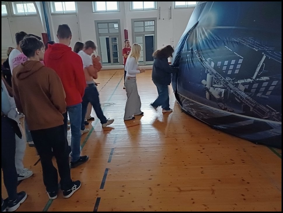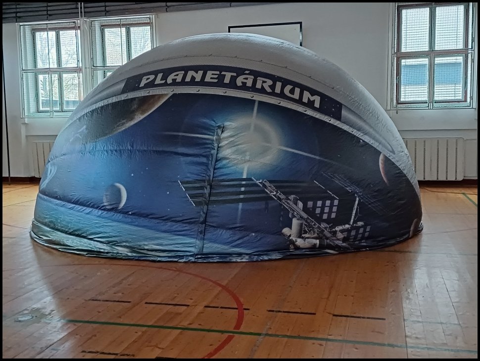 V pondělí 13. listopadu 2023 za námi přišly hvězdy. Tělocvičnu zaplnilo mobilní planetárium Hvězdárny v Rokycanech a v Plzni, a tak celkem pět tříd mohlo postupně vstoupit pod nafouknutou polokouli. Sledovali jsme poutavé povídání o hvězdné obloze a jejích tělesech v podání pana Lumíra Honzíka. Technické zabezpečení ovládal pan Lukáš Winkler. Akce přispěla k rozšíření výuky astronomie netradiční formou.