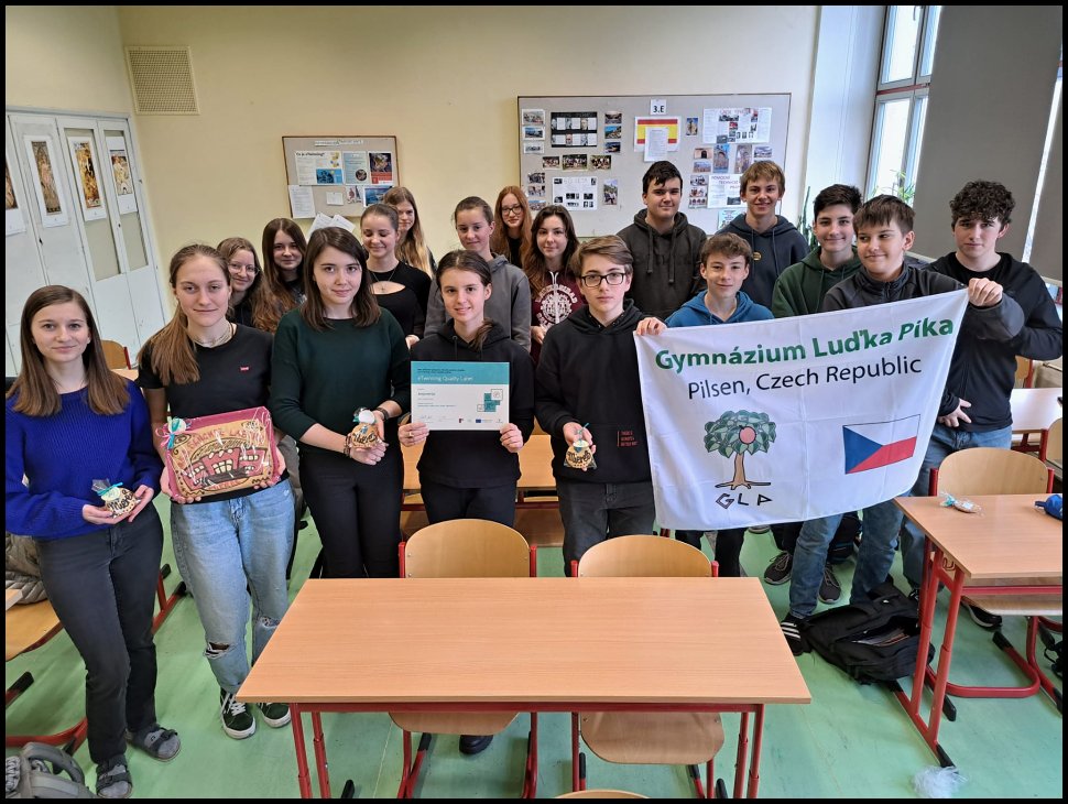 Gymnázium Ludka Pika consigue otro premio eTwinning gracias al proyecto Alejandría, concretamente el Sello de Calidad. El Servicio Nacional DZS como recompensa envió varios regalos a los estudiantes participantes además del diploma. También la escuela socia IES Sánchez Lastra, del actual proyecto Éxodos, envió unos presentes a los estudiantes: galletas con el nombre del instituto de Mieres y una gran galleta de jengibre con la forma de su centro que entregó a los dos profesores de GLP durante su visita el pasado mes de febrero durante el proyecto de job shadowing, perteneciente a Erasmus+.