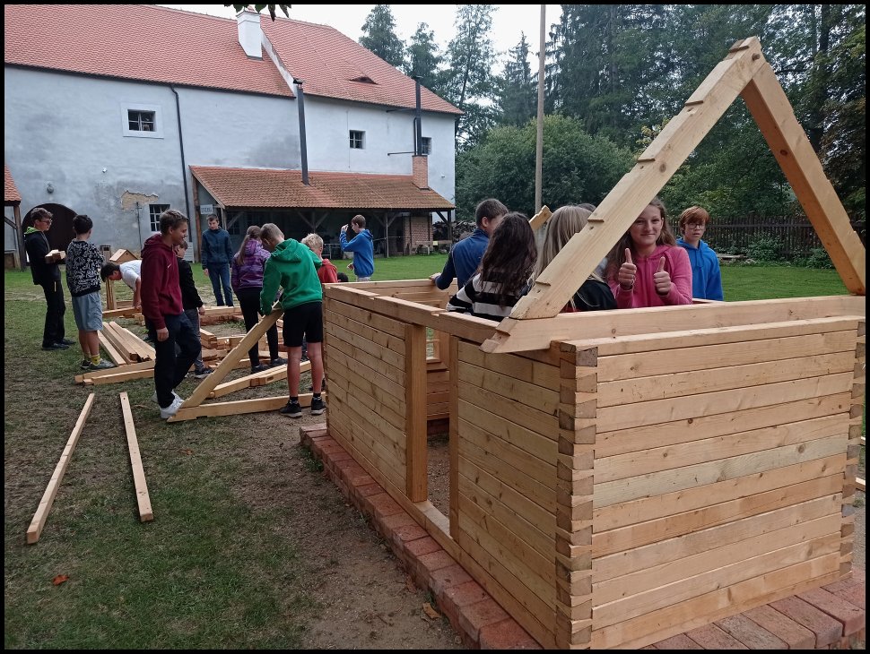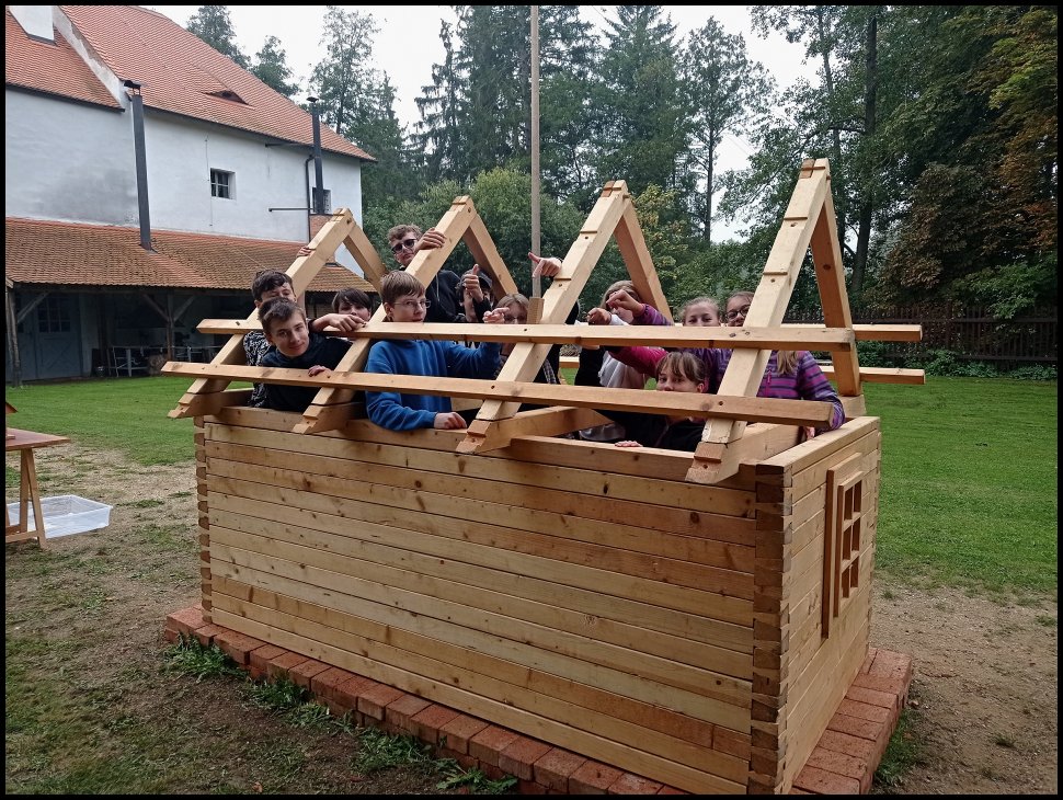 Po dostavění roubenek dvou různých velikostí přišla na řadu svačina s ukázkou výroby zednické lžíce. Následoval návrat na nádraží a pak vlakem domů. Věříme, že si to všichni užili a těšíme se na další školní výlet!