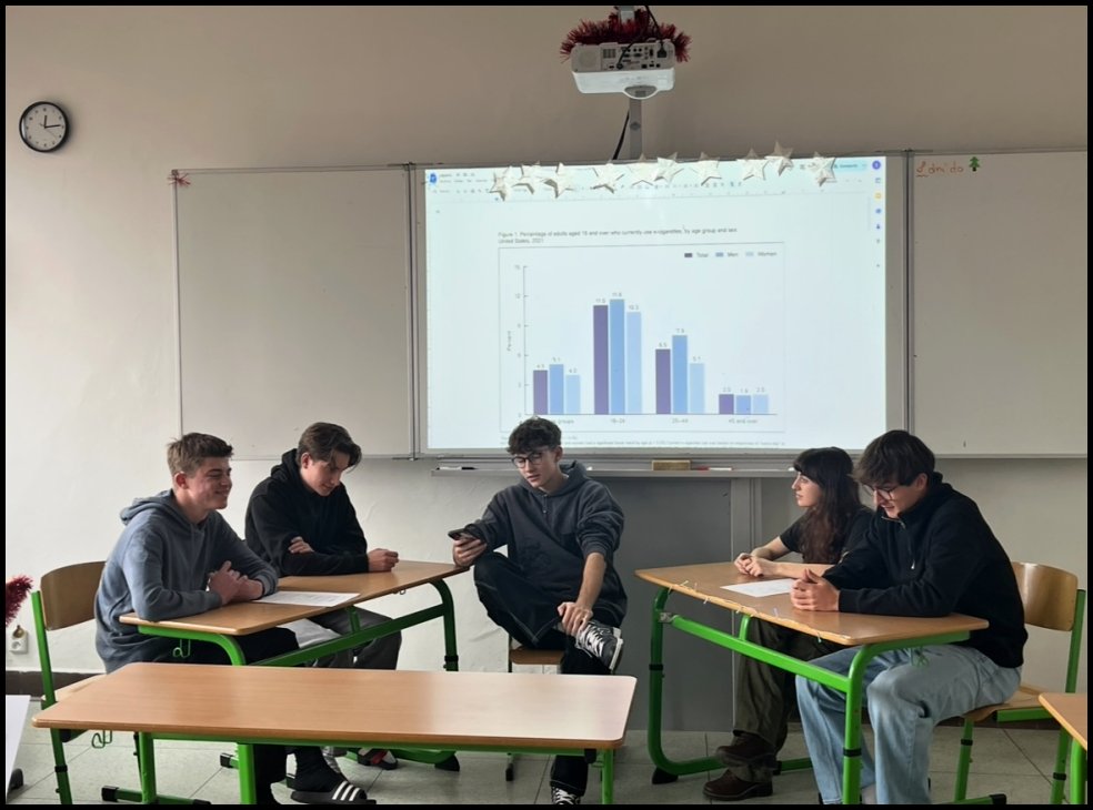 V těchto dnech se ve 4.E v předmětu španělská literatura konaly debaty k procvičení argumentace. Témata, jako je trest smrti, užívání elektronických cigaret a sociálních sítí u dětí mladších 15 let, byla prodiskutována. Dobrá práce!