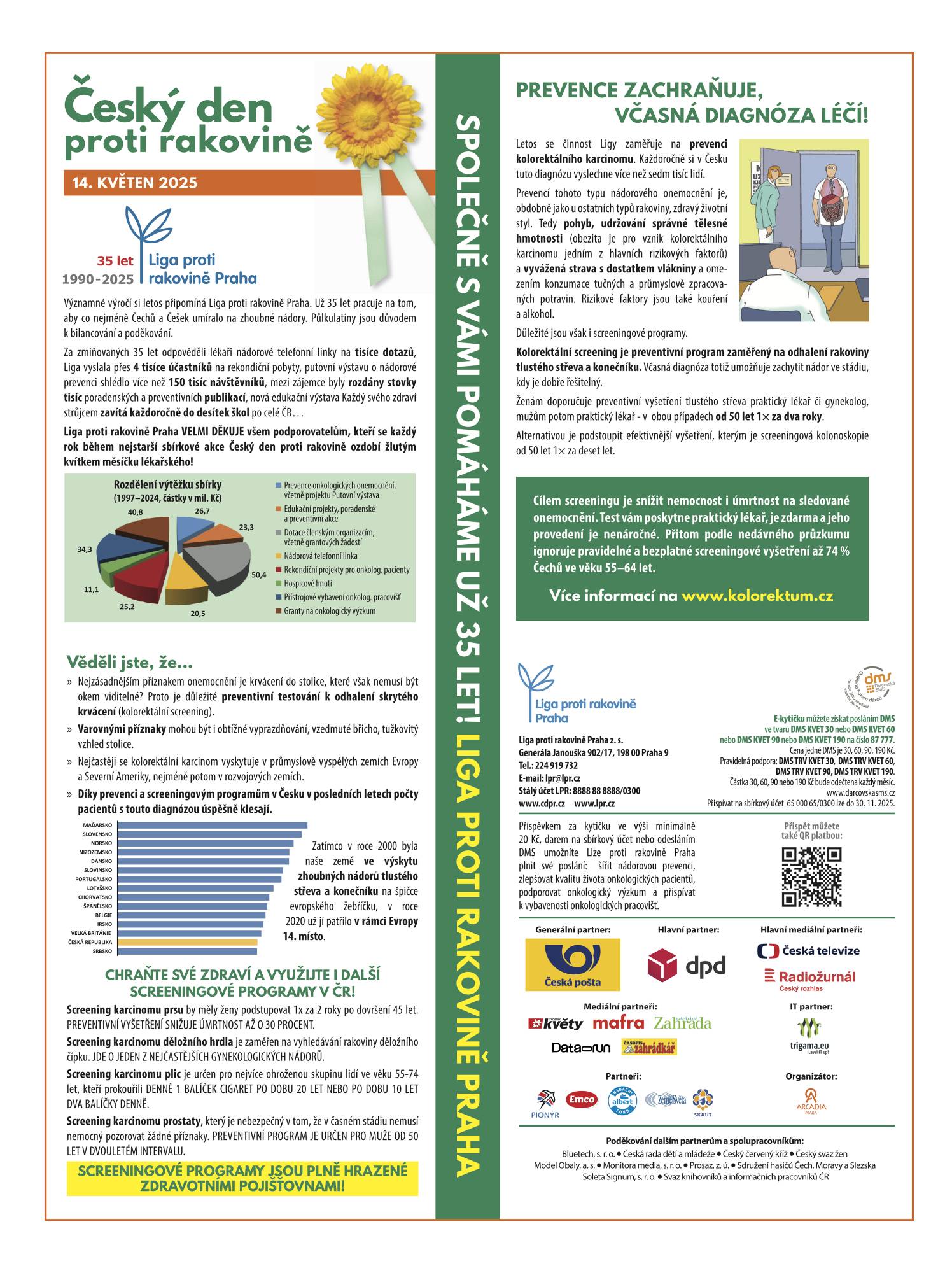 Ve středu 14. května proběhl již 29. ročník tradiční veřejné sbírky Český den proti rakovině, jejímž cílem je každoročně šířit osvětu o jednom z nádorových onemocnění. Hlavním tématem letošního ročníku byly prevence kolorektálního karcinomu a význam screeningových programů. Výtěžek z prodeje kvítků měsíčku lékařského je určen na podporu nádorové prevence, zlepšení kvality života onkologických pacientů, rozvoj výuky a výzkumu v oblasti onkologie a vybavení specializovaných center.