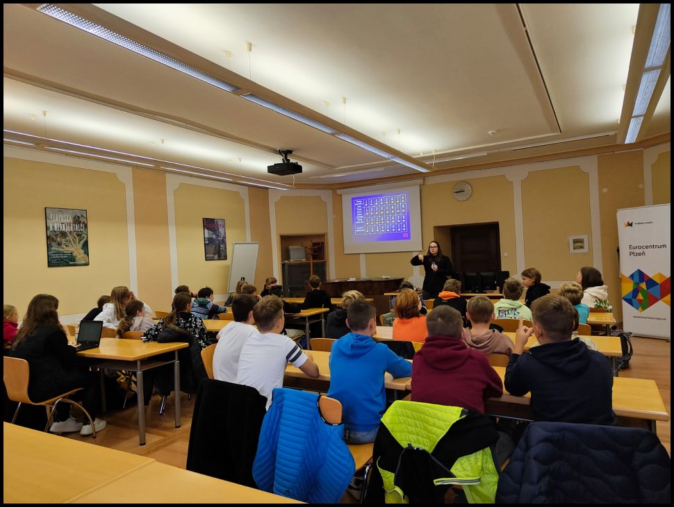 V pondělí 30. září 2024 jsme se s naší třídou zúčastnili Evropského dne jazyků. Akce probíhala na několika místech kolem plzeňského náměstí Republiky. Například s německým jazykem jsme se seznámili na plzeňské radnici, o Evropě jsme si povídali ve vědecké knihovně. Tam jsme si zahráli i hru Riskuj, kde jsem s týmem vyhrála karamely.