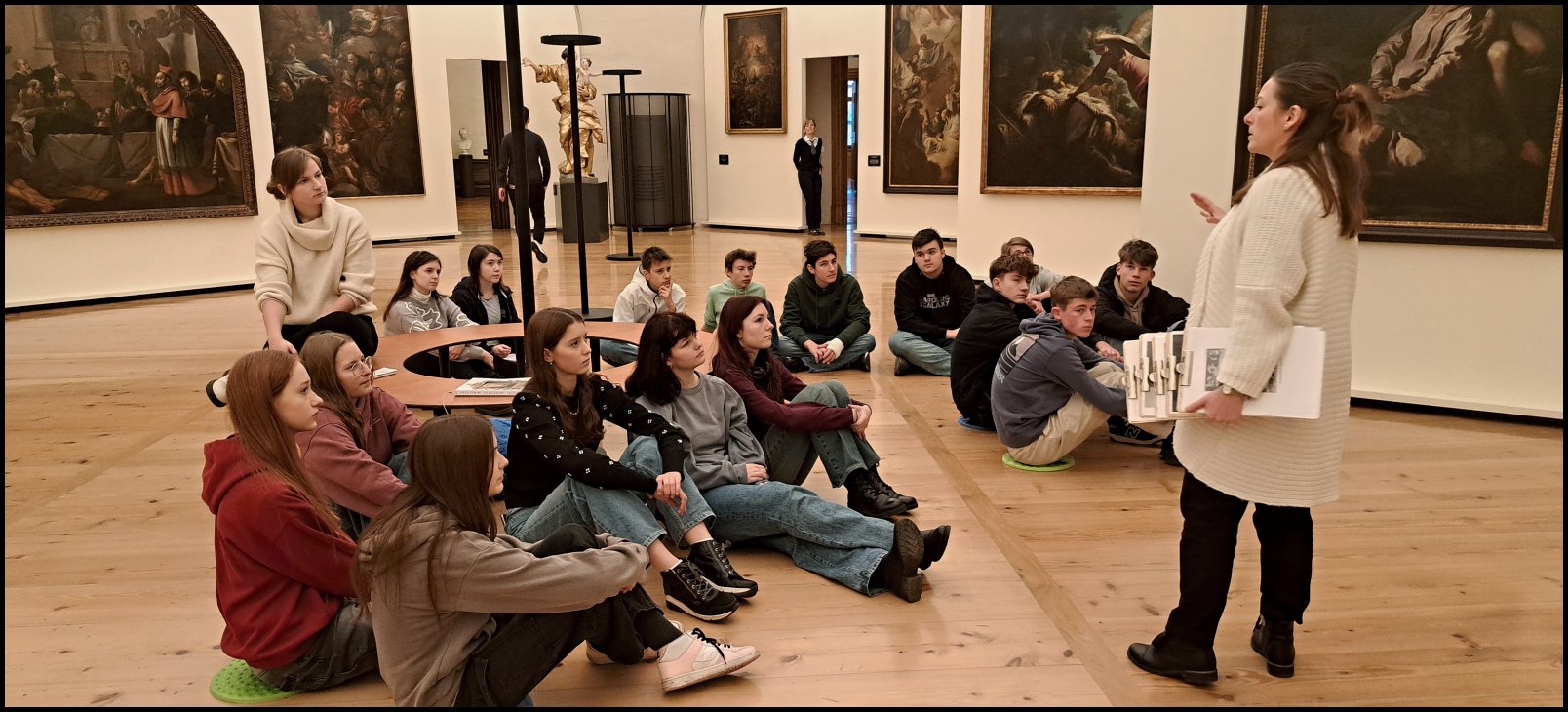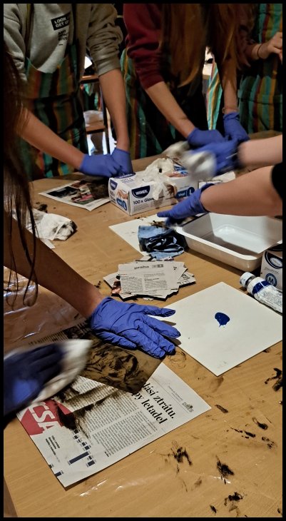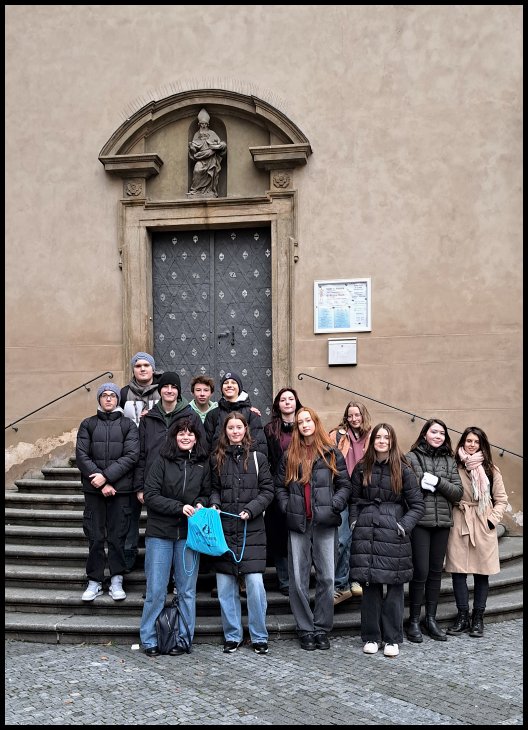El viernes 13. 12. 2024 algunos estudiantes de las clases 3.E, 4.E y 5.L visitaron El Palacio de Schwarzenberg en Praga donde participaron en el taller “En el estudio gráfico” („V grafickém kabinetu”) dentro del proyecto eTwinning Arthenea. La excursión tuvo dos partes: teórica y práctica. Durante la parte teórica nos familiarizamos con los gráficos y la impresión gráfica. Además comparamos la obra de Karel Škréta “San Martín comparte su capa con un mendigo” con las obras de una temática similar que otros pintores pintaron en siglos diferentes y buscamos cambios causados por la impresión gráfica.
