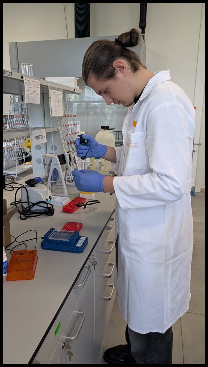 Dne 2. května se čtyřčlenná skupina žáků 3.E a 4.E s doprovázena panem učitelem Marcosem vydala na vzdělávací praxi do laboratoří VŠCHT v Praze. Náplní projektu bylo, aby si středoškolští žaci vyzkoušeli práci v biochemické laboratoři a seznámili se s tzv. PCR metodou, která se užívá jak v potravinářství, tak například ve forenzní vědě. Vyzkoušeli jsme si práci s odborným vybavením pod dohledem místních profesorů, kteří se nám po celou dobu věnovali. Prostoje mezi fázemi pokusu byli vyplněné zajímavou přednáškou o škole. Byla to skvělá možnost seznámit se s nekterými profesory a s prostředím VŠCHT jako takovým.