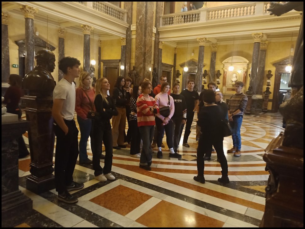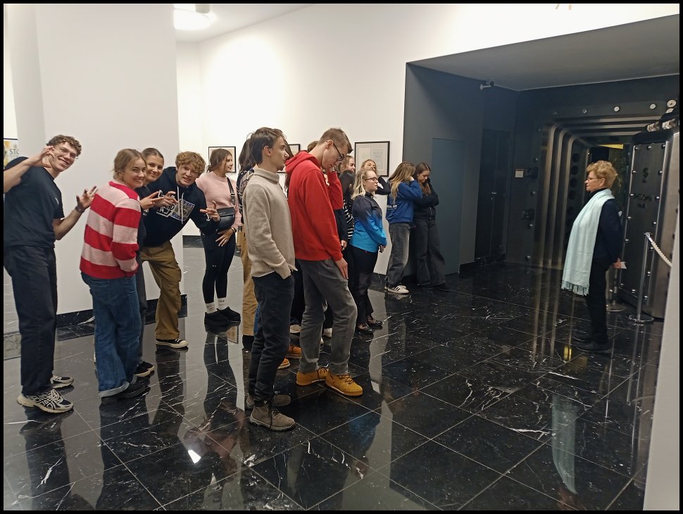 Dne 12. listopadu se naše třída 6.E vydala na výlet do Prahy s cílem navštívit dvě zajímavá místa. První naší zastávkou bylo Národní muzeum, ve kterém jsme měli možnost se dozvědět o historii Panteonu a následně si prohlédnout všechny busty a sochy osobností, které byli významné pro český národ. Další zastávkou byla Česká národní banka. Po zhlédnutí krátkého filmu, který nám ukázal zábavnou formou, jaké jsou všechny role této instituce, jsme šli na prohlídku trezoru. Uvnitř trezoru jsme se mohli podívat na různé exponáty, které pocházely z různých dob historie peněz. Následně jsme si mohli vyzkoušet pod UV světlem, jaké všechny ochranné prvky má bankovka. Měli jsme také možnost zkusit, jestli dokážeme zvednout zlatou cihlu jednou rukou. Další příležitostí bylo vyzkoušet si, jak se razí mince. Ovšem nejzajímavější věc v celém trezoru byla velká zlatá mince, která byla zhotovena k 100. výročí zavedení československé koruny. Dozvěděli jsme se o ní, že váží 130 kg a má nominální hodnotu 100 milionů korun. Po ukončení prohlídky jsme se vydali na nádraží a obohaceni novými informacemi jsme se vrátili zpět do Plzně.