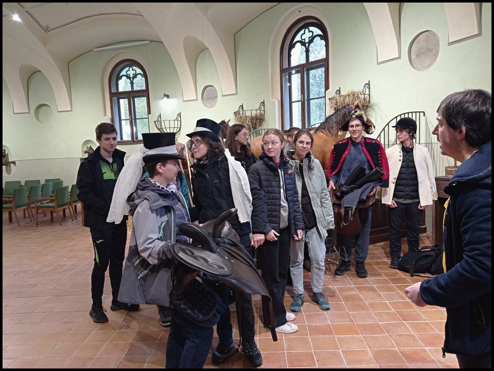 Po příjezdu autobusem jsme se rozdělili do tří skupin. S panem učitelem Koubou měla každá skupina možnost nahlédnout nejen do krásných prostor jízdárny Světce, ale také do života tehdejší společnosti. Velmi výřečný pan průvodce obohatil naše znalosti o poznatky ze světa jezdectví a architektury. Další aktivitou byla stopovačka, která měla prověřit naše orientační schopnosti.