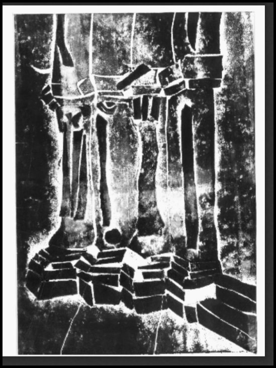 Lukáš v loňském roce vytvořil zajímavou koláž na téma románská architektura. Grafika vytvořená technikou tisk z koláže - originální tím, že vytváří magické světlo v okolí lepených částí, zaujala porotu pro tajemnou a přitažlivou atmosféru, která se esteticky propojila s námětem v podařeném výsledku. Lukášova práce je navíc tou ojedinělejší v záplavě prací dětí, které se výtvarné výchově věnují nadstandardně v ZUŠ. Lukášova grafika vznikla v rámci běžných hodin VV.