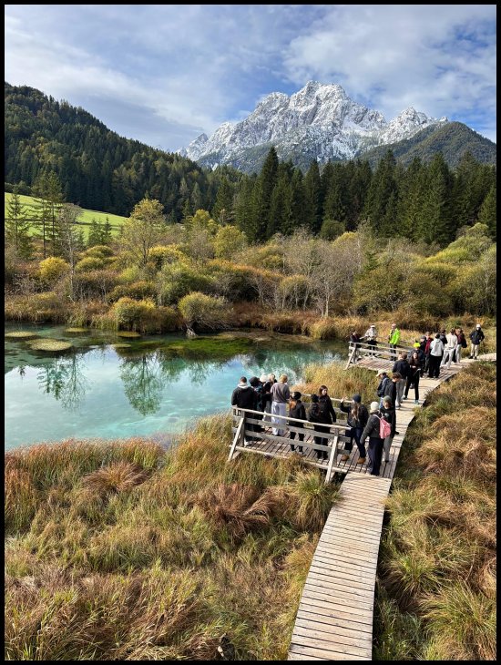 Když jsme se v neděli po průjezdu skrz Německo a Rakousko dostali přes slovinské hranice, první aktivitou našeho výletu bylo si v devět hodin ráno vyšlápnout nedůvěryhodně vypadající schody podél druhé nejvyšší skokanské rampy světa. Ty rozespalé žáky, které neprobudila optimistická nálada našich učitelů, paní uč. Dostálové, paní uč. Havlové a pana uč. Němce, určitě probral krásný výhled na hory s jasně modrou oblohou. První dva dny strávené v horách jsme se opravdu nabažili nádherných panoramat, například z hory Vogel, a díky krásnému počasí, které nás celou dobu provázelo, jsme několikrát měli i výhled na horu Triglav, což podle slov a radosti pana průvodce není samozřejmostí. Čekal nás další výstup schodů, tentokrát na lesní cestě, a jeho cíl v podobě 78metrového vodopádu byl snad ještě přitažlivější než výhled z lyžařské rampy.