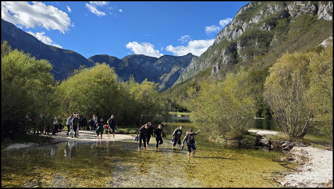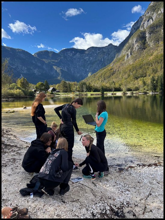 Pokud jsme zrovna nebyli fascinováni krajinou, měli jsme v rukou počítače a prováděli geologický výzkum. U tří různých jezer jsme měřili a následně srovnávali jejich teplotu, pH, ale třeba i tlak okolního vzduchu. A i přes opravdu studené teploty, které přístroje ukázaly, se ti odvážnější z nás ponořili do mrazivých vod Slovinska. My, kteří jsme neměli tolik odvahy, jsme se otužování alespoň přiblížili při přecházení potůčků, které nás dělily od jezera Jasna.