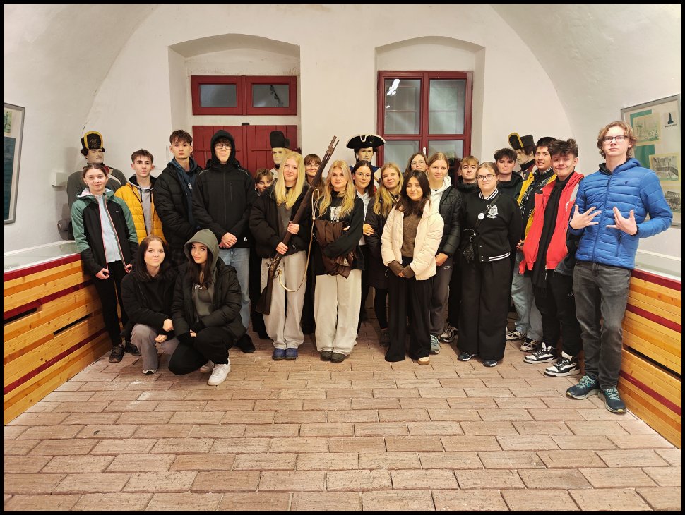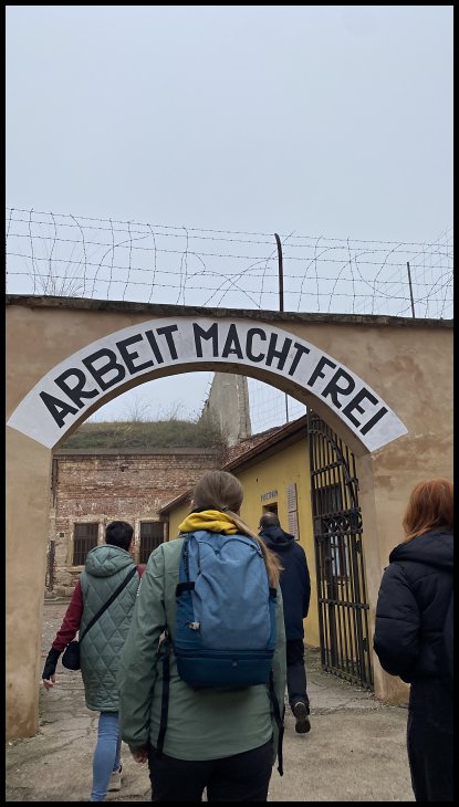 Ve dnech 10. až 12. listopadu jsme (třída 3.E) spolu s výběrem žáků z 1.A a 3.A nahlédli zpět do kruté historie terezínského ghetta. Po ubytování jsme se seznámili s programem na následující dny a poté jsme se vydali na prohlídku města, kde jsme měli šanci dopodrobna vidět zlou realitu velké pevnosti. V odpoledních a večerních hodinách jsme se účastnili workshopu Od čísla ke jménu, kde jsme v rámci týmů každý zpracovávali příběh jiného konkrétního člověka, který si Terezínem prošel. Druhý den jsme si navzájem ukázali výsledky naší práce na předchozím workshopu. Divadelní představení, která jsme si pilně připravili den předtím, byla velmi originální a každý tým dokázal svůj příběh zpracovat naprosto odlišným způsobem. Po obědě proběhlo online setkání s pamětnicí druhé generace, která nám poodkryla další pohled na život v ghettu a ochotně odpověděla na naše dotazy. Odpoledne jsme pak strávili na dalším workshopu. Rozdělili jsme se do tří skupin s tím, že každá se věnovala jinému tématu. Na výběr byla následující: Příběh o pomoci a jedna kapitola z terezínského ghetta, Vzkazy z minulosti a Nacistická propaganda. Díky tomu jsme také měli možnost navštívit další prostory Terezína jako studovny v Muzeu ghetta a ve Fučíkově ulici, nebo také půdní divadlo, kde se odehrávala většina našeho programu. Ve večerních hodinách jsme si společně prošli podzemní chodby Hlavní pevnosti a na chvíli se tak přesunuli do 18. století. Prohlídka v sobě zahrnovala také „bojovku” ve formě přesunu chodbou v úplné tmě a tak jsme na několik minut zhasnuly svíčky v našich lucernách a v řadě za sebou prošli část okruhu znovu, přesto s úplně jinými dojmy. Na závěr jsme se 3. den podívali do malé pevnosti, která nás opět vrátila do pochmurné nálady, čemuž pomohlo i mlhavé počasí.