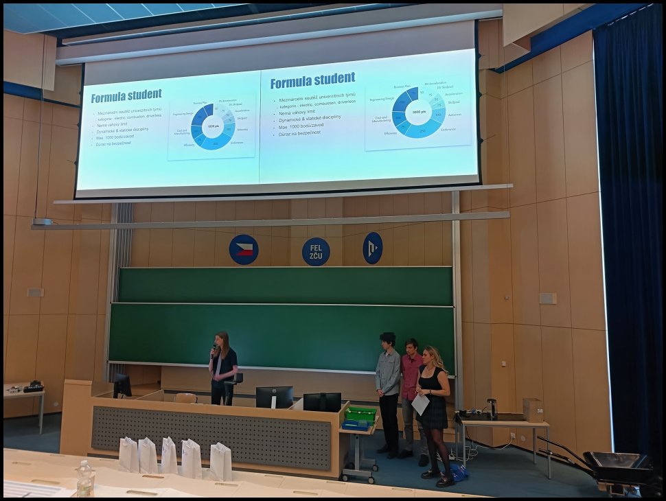 Děkujeme složenému týmu 8.L (Martina Vítovcová) a 5.L (Vašek Strnádek, Ondřej Špinka, Radim Kotlan), který 5. února 2026 reprezentoval naši školu na Technické olympiádě Plzeňského kraje s prací „Komponenty pro elektrickou formuli”. Tým odvedl poctivý kus práce při řešení úlohy i prezentaci své práce. Těšíme se na další projekty v TO a k letošnímu výsledku gratulujeme.