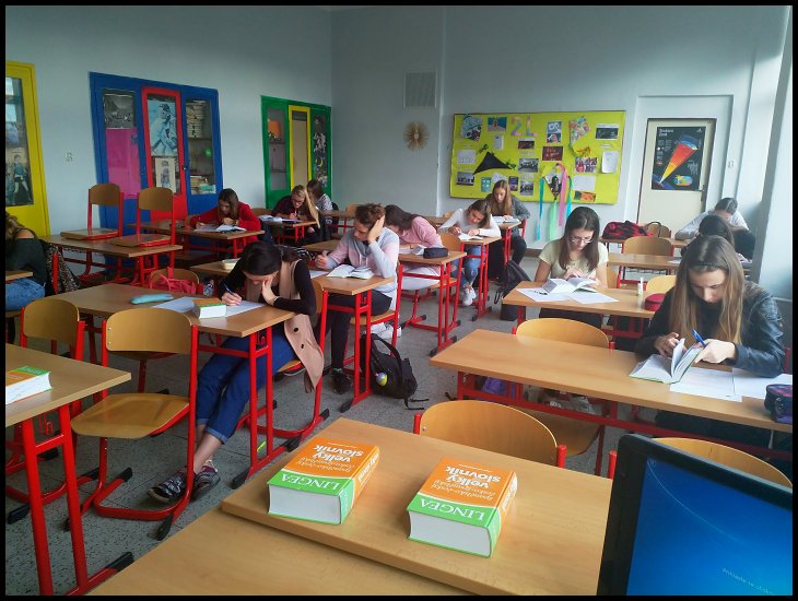 Dne 28. listopadu vybraní žáci překládali text o dobrovolnictví ze španělského do českého jazyka v rámci českého národního kola soutěže Juvenes Translatores nazvané „Mladí překladatelé 2019“. Byly vybrány tři nejlepší překlady: první místo Zuzana Nietschová (4.E), druhé místo Štěpánka Vyletová (6.E) a třetí místo Eliška Gregová (3.E). Vítězný překlad bude poslán k celorepublikovému hodnocení na Evropskou komisi do Prahy.