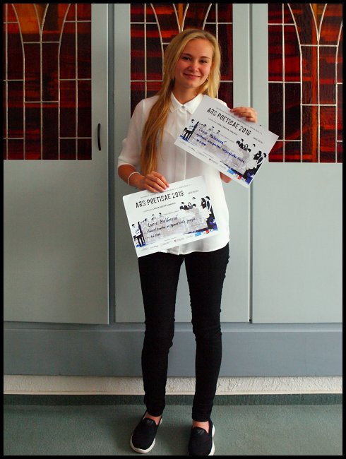 diplom za celkový projev a výběr textu/diploma por expresión artística y elección del texto – Emma Šiplová diplom za celkové pojetí/diploma por interpretación – Lucie Malánová |