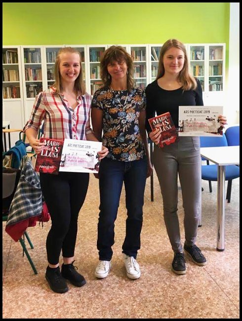 | překlad/traducción: | diplom za vynikající interpretaci cizojazyčného textu a za vlastní tvorbu/diploma por intepretación excelente del texto extranjero y por su producción propia – Lucie Malánová |