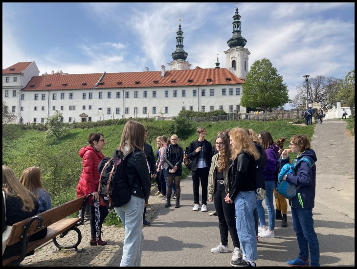 V týdnu od 2. do 6. května třída 2.E v rámci Projektového týdne podnikla několik výletů a prohlídek. V pondělí jsme zavítali do Prahy, kde nás paní průvodkyně provedla nádhernými částmi Prahy. Během dvouhodinové procházky jsme sešli z Pohořelce přes Strahovský klášter, Hradčany, Nový Svět a Nerudovou ulicí až na Malostranské náměstí. V úterý jsme šli do Západočeského muzea, kde pro nás byl připraven workshop „Pravěk“ a poté jsme se odebrali do Velké Synagogy, nedávno opravené. Velmi nás zaujalo povídání paní průvodkyně, a to zejména o židovských zvycích. Následující den jsme navštívili Unii neslyšících v Tylově ul., kde jsme se dozvěděli informace o neslyšících a nedoslýchavých a dokonce jsme se naučili, jak se některá slova znakují. Přednáška byla tak zajímavá, že se protáhla a museli jsme běžet celou cestu až do Veleslavínovy ulice, kde jsme měli zamluvenou prohlídku plzeňského podzemí. Ve čtvrtek měl být na programu workshop na téma finanční gramotnost, který byl však přeložen kvůli nemoci, tak jsme se rozhodli, že místo něj si dáme výšlap na Radyni. Někteří si vzali i své psí miláčky. V pátek jsme nabyté informace zpracovali a vytvořili pěkné prezentace a vědomostní kvízy. Projektový týden jsme si užili, odpočinuli si a načerpali sil na poslední dva měsíce výuky.