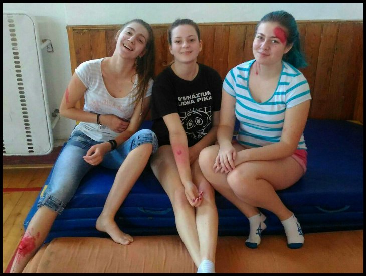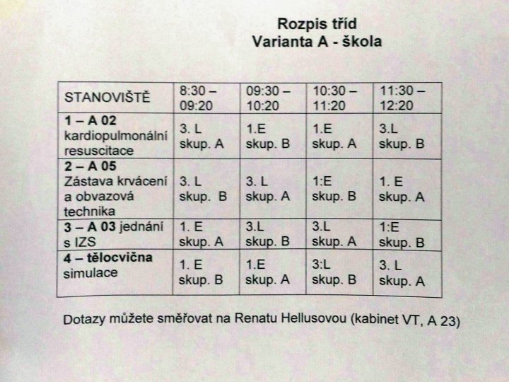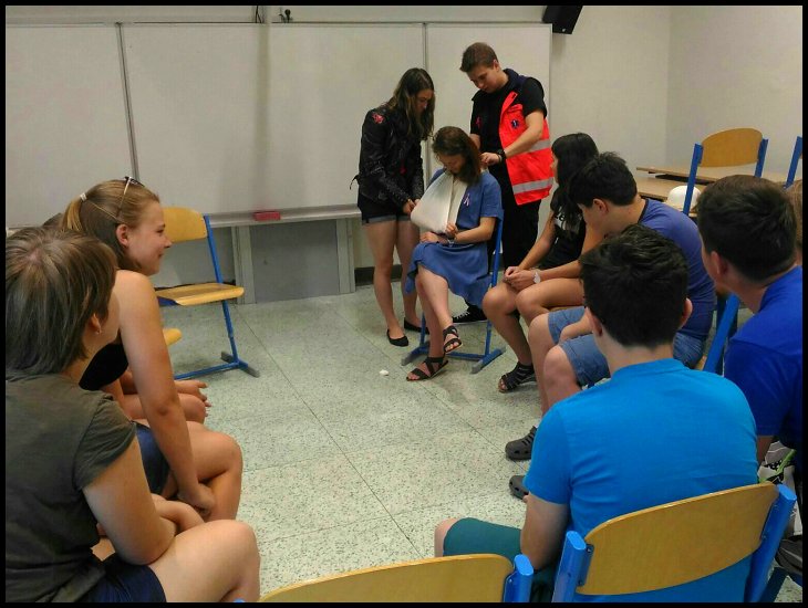 3.L a 1.E se celé pondělní dopoledne školí pod vedením studentů medicíny a záchranářství (členů spolku Live Saving Support) jak efektivně poskytnout neodkladnou první pomoc. Obětavé zdravotnice ze 6.L nemohou chybět :-)