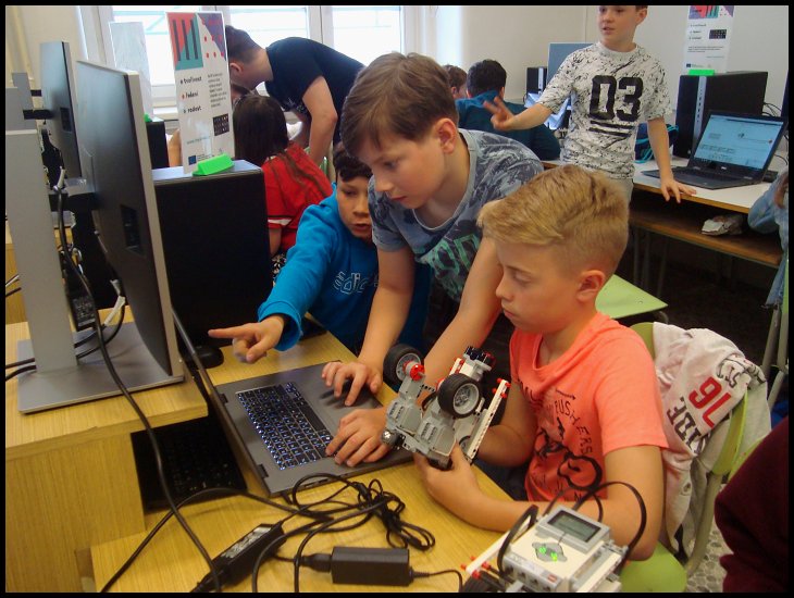 26. dubna 2019 se třída 1.L zúčastnila propagační akce projektu PRIM na PF ZČU v Plzni. Žáci si vyzkoušeli základy algoritmizace a programování výukových robotů. Některé více nadchli Ozoboti, jiné Lego Mindstorms. Děkujeme týmu KVD za připravené aktivity!