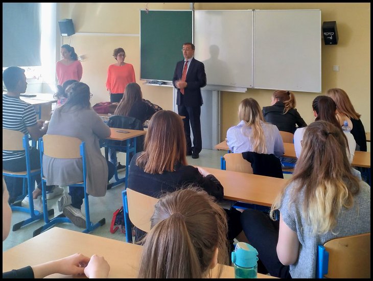 Dne 25. dubna 2019 navštívil naše gymnázium španělský velvyslanec Angel Lossada a atašé pro vzdělávání Amaya Cal Linares, kteří nejdříve mluvili s učiteli bilingvní sekce a následně se setkali se třídou 5.E a pár žáky maturitního ročníku 6.E. Hodina proběhla formou konverzace, pan velvyslanec na všechny položené otázky odpovídal vřele a občas i s humorem. Atašé pro vzdělávání byla velice sympatická a přívětivá. Žáci se dozvěděli spoustu nových informací a uvítali příjemné zpestření dne a celé setkání bylo velice přínosné a milé.