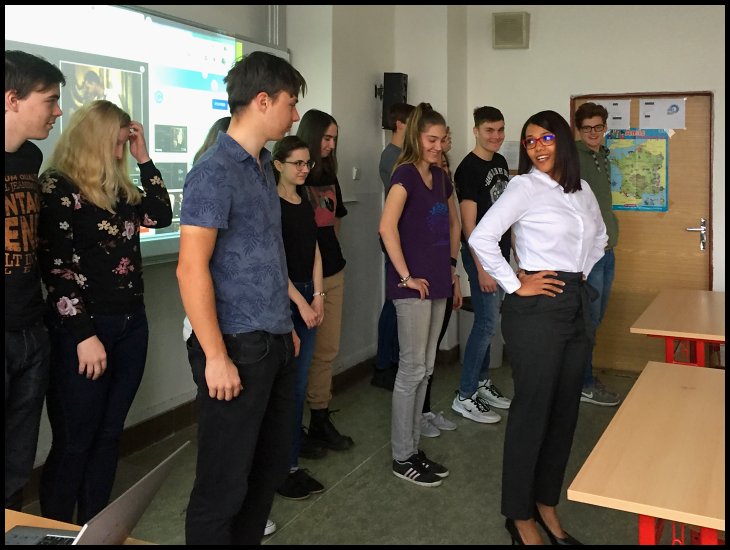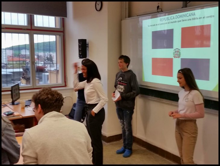 Dne 3. května navštívila třídy 3.L, 5.L, 6.L a 7.L paní Yicely Vargas z Dominikánské republiky, která momentálně žije v Plzni. Velice poutavě vyprávěla o své zemi, o typických jídlech, o karnevalu, ale největší úspěch rozhodně měla výuka tance bachaty.